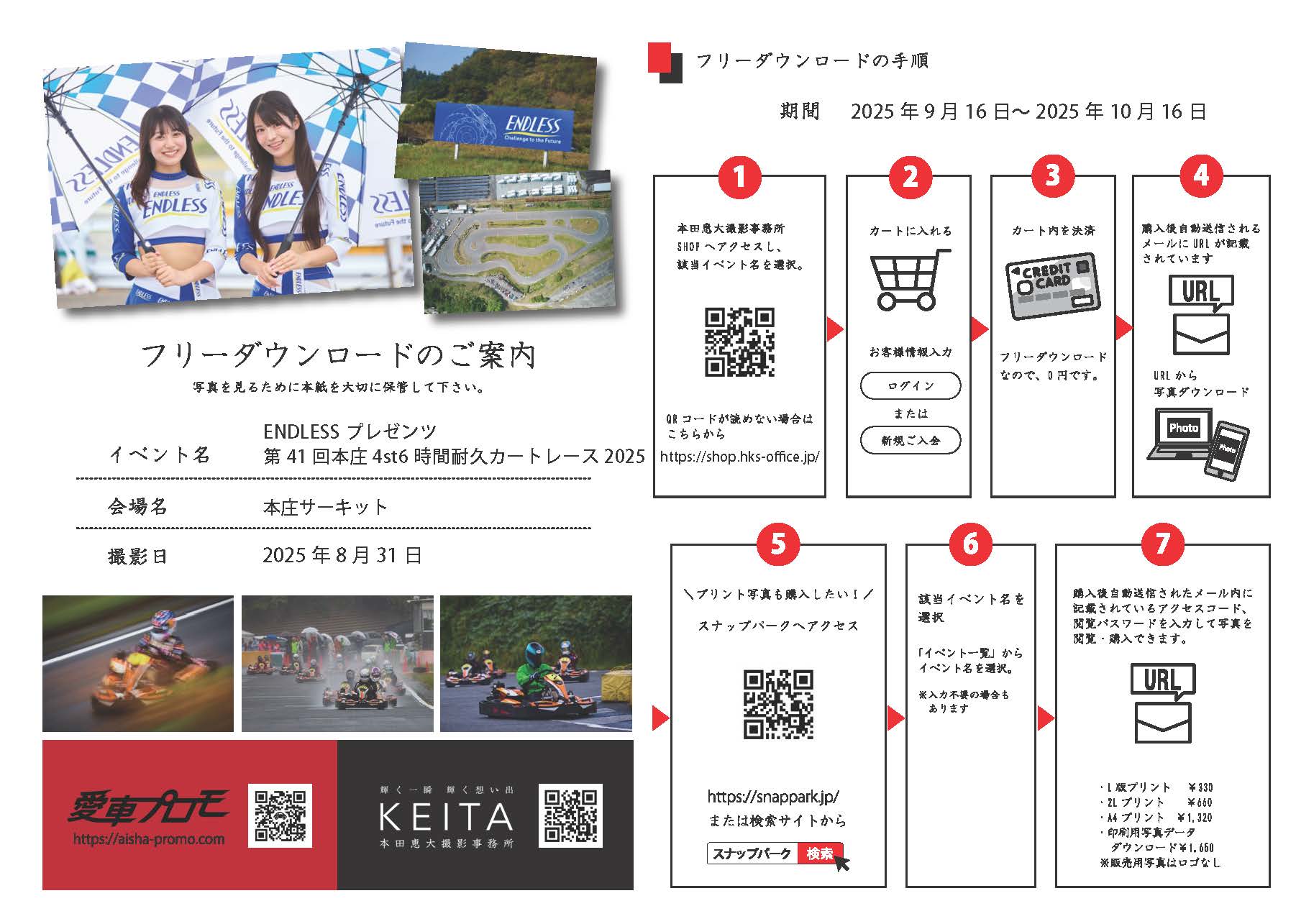 「ENDLESSプレゼンツ 第41回 本庄4st6時間耐久カートレース2025」の写真フリーダウンロード/写真販売用の専用ページです。